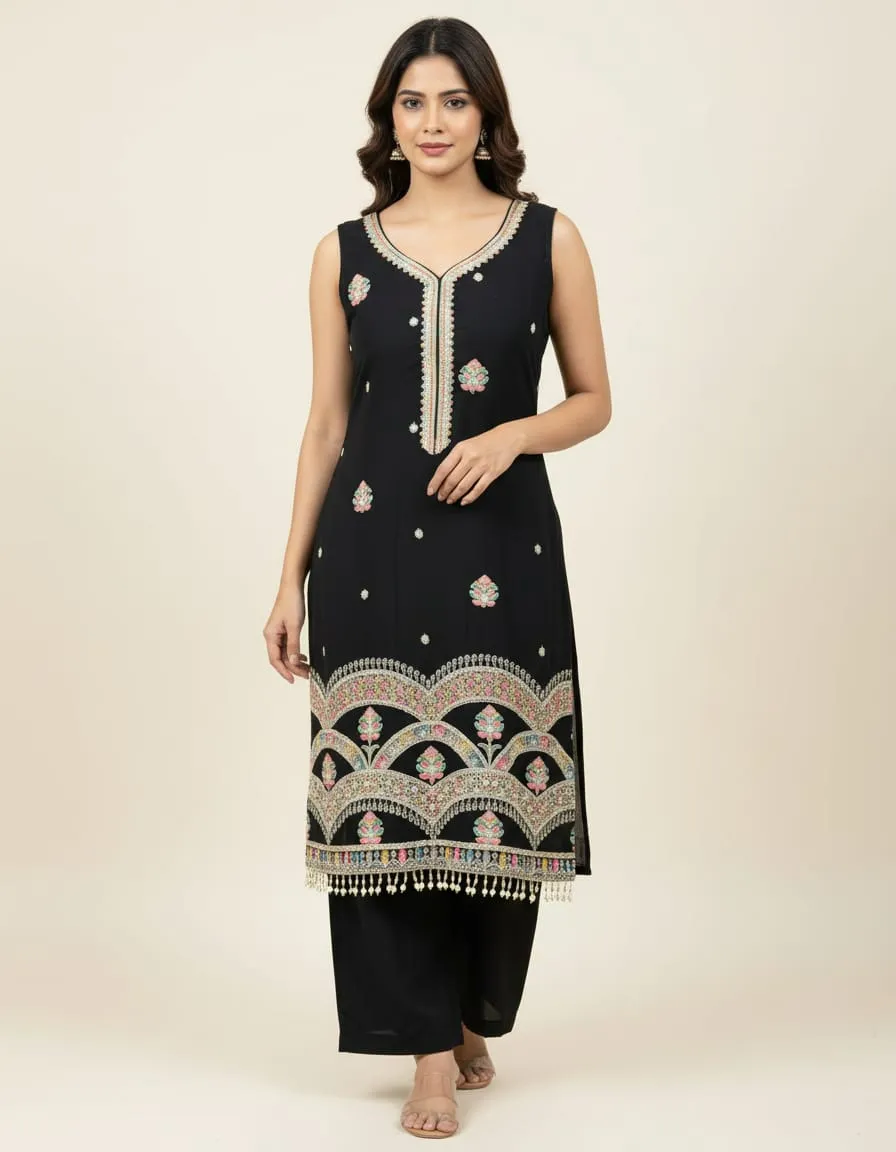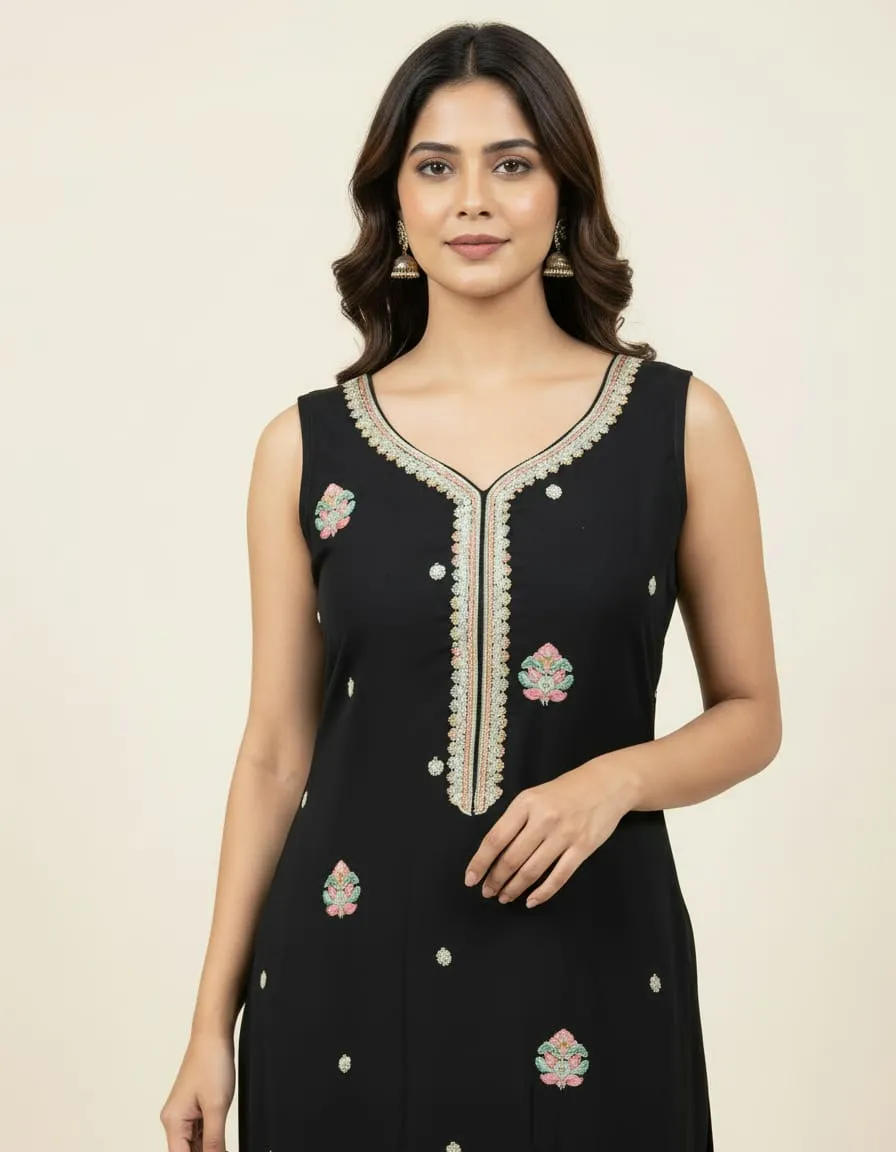 Step into understated royalty with our Zehra Noir Kurta Set — a timeless black ensemble crafted for women who love elegance with depth.